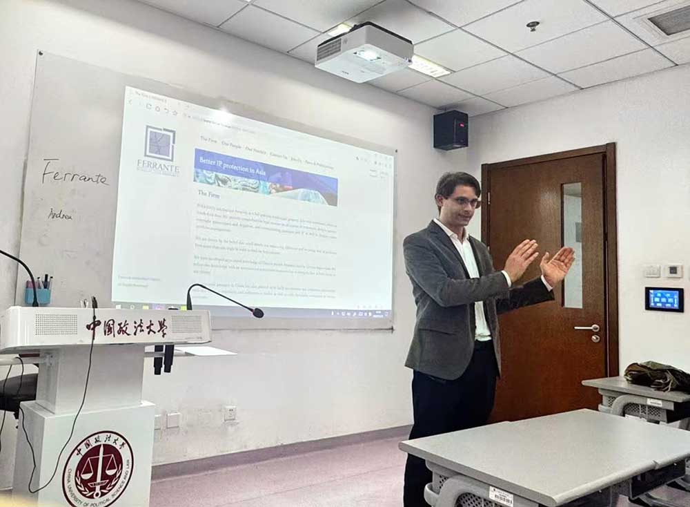 On 18 December 2025, Andrea Sebastiani, Associate at Ferrante Intellectual Property, was invited to provide an introduction to the firm's IP practice at the China University of Political Science and Law (CUPL), one of Asia's leading universities for legal studies.