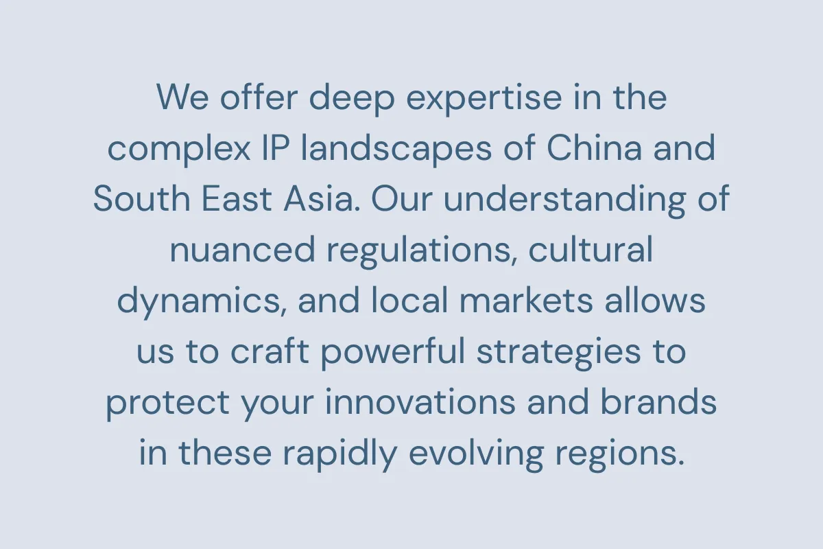 FERRANTE Intellectual Property is a full practice intellectual property firm with established offices in China and South-East Asia. We provide comprehensive legal services on all aspects of trademarks, designs, patents, copyright prosecution and litigation, anti-counterfeiting strategies and IP as well as domain names portfolio management.